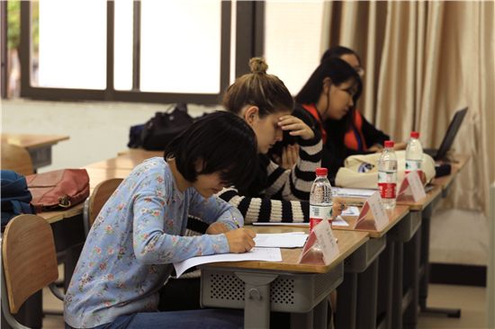 在最后一名同学表演完毕后,工作人员开始了紧张的计分工作。在此期间,法语系刘巍老师和外教Monsieur Rocher对同学们的表现作了点评并对本次大赛进行总结。