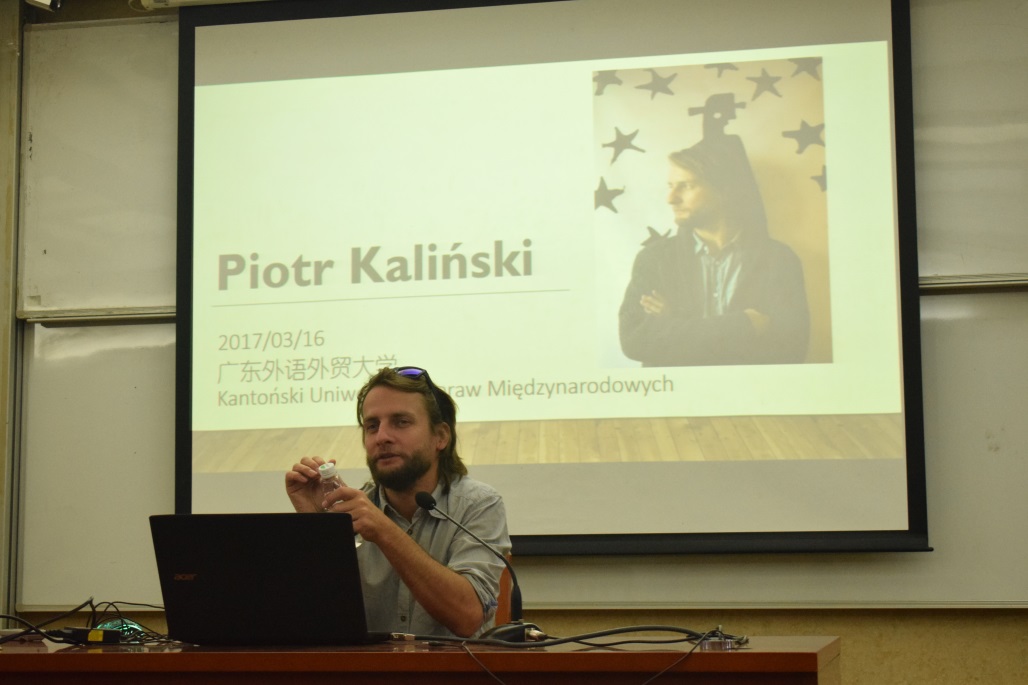 本网讯 3月16日下午4时,波兰知名绘图艺术家彼得·卡林斯基(Piotr Kaliński)到我校为波兰语系师生作讲座。出席本次讲座的有外教阿格涅什卡·雅辛斯卡(Agnieszka Jasińska),青年教师张和轩以及波兰语系大一大二的学生。