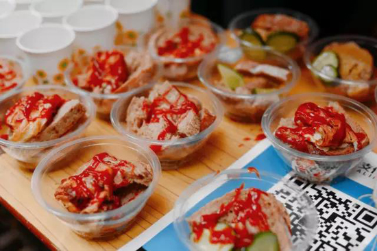 在开幕式表演的同时,各语系的同学正紧张地准备美食。他们使出浑身解数吸引顾客,精美的包装、浓郁的香气,引人驻足,德语系的同学更是拿出吉他、麦克风现场演绎歌曲,引来观众的围观。各摊位的美食各具特色,有法语系的起泡酒、德语系的小香肠、西班牙语系的patatas、意大利语系的张学友的咖啡和张志明的肉酱意粉、希腊语系的肉末茄子、希腊酸奶、波兰语系的棉花糖……美食散发的浓郁香气布满整个校园,吸引了各学院师生和外国友人。