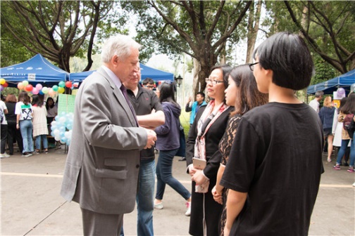 团委学生会举办的第十一届欧罗巴文化节之“糖果王国的盛会”开幕式嘉年华在北校区第二教学楼中庭和校道顺利举办。出席本次活动的嘉宾有俄罗斯联邦驻广州总领事普罗斯维尔金·亚历山大、波兰驻广州领事馆总领事Joanna Skoczek以及文化官员Malgorzata Czausow、希腊副总领事尼科拉斯·拉米瑞斯和行政官巴娜乔塔·康塔库、德国领事馆副领事雷德、法国领事馆语言教育与运动项目官员皮耶尔伊夫、意大利领事馆文化官员Beatrice Sbrollini、英德市黄花中学副校长张廷琳老师、成人在线