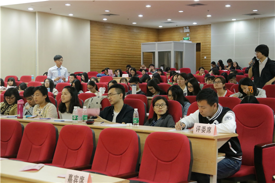 团委书记王斌龙老师、希腊语系周童苏老师及2013、2014级辅导员陈静老师、东方语言文化学院学生会副主席郝叶欣同学。评委由法语系邓玮老师、德语系贾晨老师、西班牙语系秦晓莹老师、俄语系费俊慧老师、意大利语系高翔老师、葡萄牙语系杨菁老师、波兰语系张和轩老师和希腊语系Lampros Papagiannis外教担任。