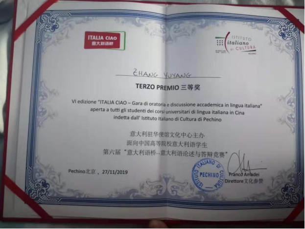 本网讯 11月27日,第六届“意大利语桥”比赛在北京意大利驻华使馆文化处举办,我校成人在线