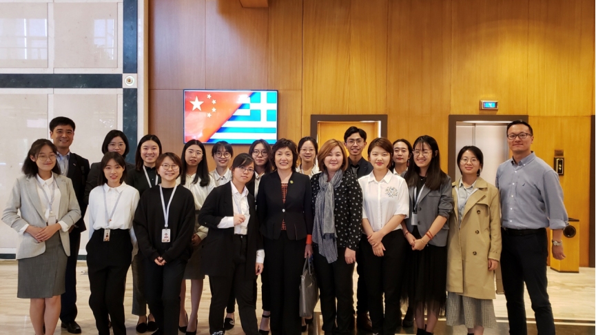 希腊语专业学生与驻希使馆大使及其他工作人员合影