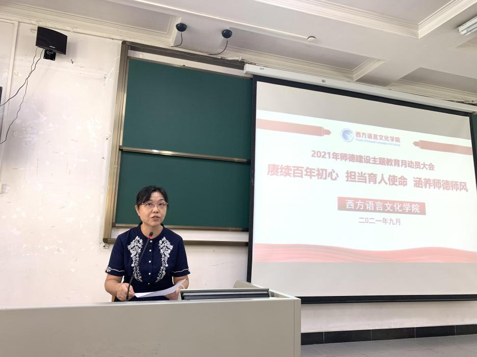 在2教114教室召开了主题为“赓续百年初心 担当育人使命 涵养师德师风”的师德建设主题教育月动员大会,学院全体教师共计80余人参与了此次会议。会议由学院党委书记敖湘晖做动员讲话。