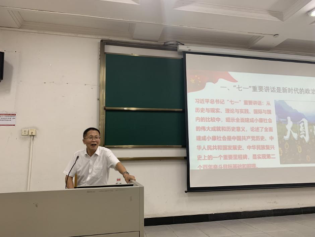 党委邀请学校百年党史宣讲团成员、马克思主义学院院长谢迪斌教授开展了习近平总书记“七一”重要讲话精神专题宣讲,学院领导班子、全体教职工共80余人参加了学习。专题宣讲会由学院党委书记敖湘晖主持。