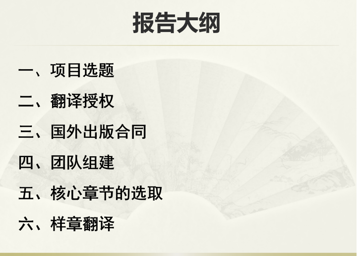 章玉萍教授以自己的申报经历为例,从译前准备、样章翻译及申请书填写三个方面分别介绍选题、团队组建、核心章节的选取及翻译等过程中可能遇到的问题及解决办法。