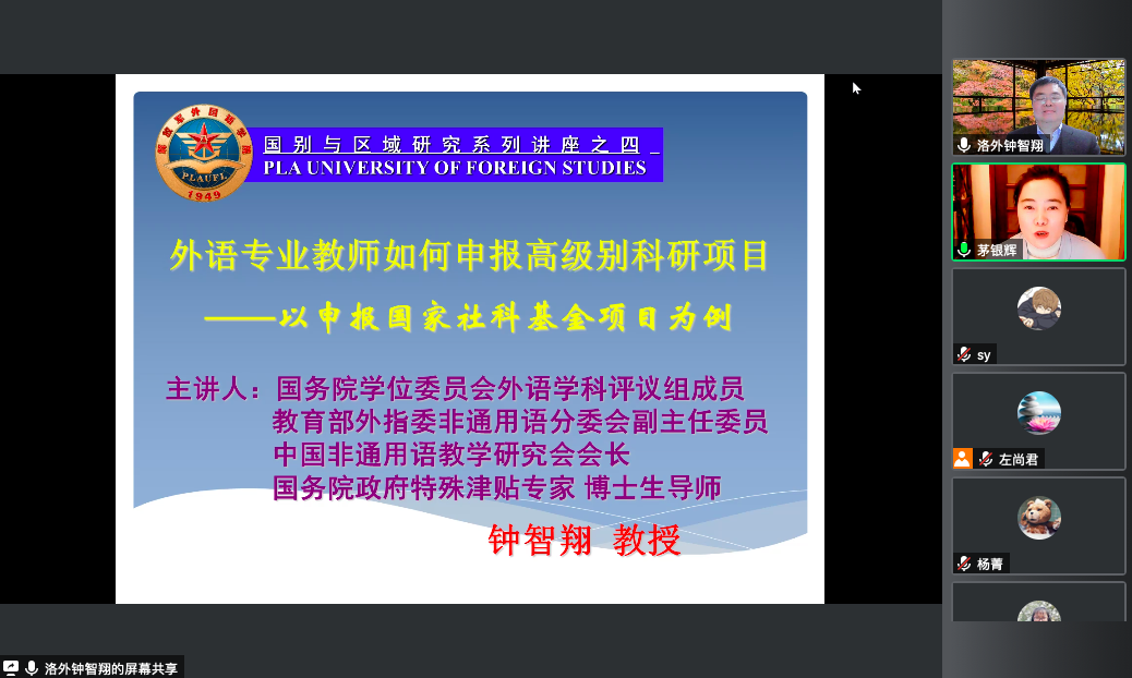 西方语言文学院举办了第二场高层次项目申报指导会,特邀国务院学位委员会外语学科评议组成员、教育部外指委非通用语分委会副主任委员、中国非通用语教学研究会会长、中国人民解放军信息工程大学洛阳校区博士生导师钟智翔教授为成人在线