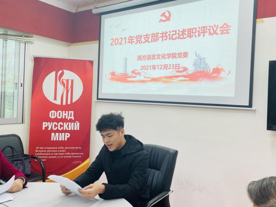 (西班牙语本科学生党支部书记王斌龙进行述职)