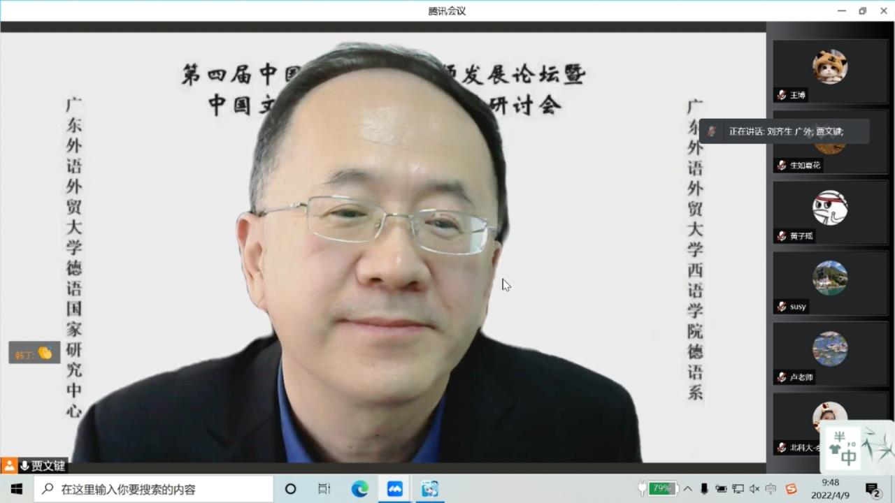 主办的“第四届全国青年德语教师发展论坛暨中国文化外译与德国汉学研讨会”顺利在线举办。学校党委李云明副书记、北京外国语大学贾文键副校长先后致辞,国内外众多从事中国文化外译的学者和研究生在腾讯会议平台参加了研讨会。会议开幕式由成人在线