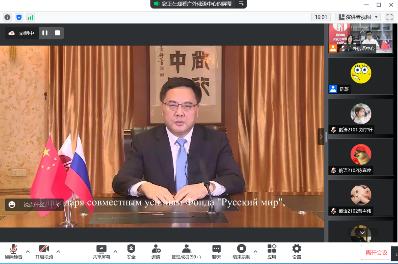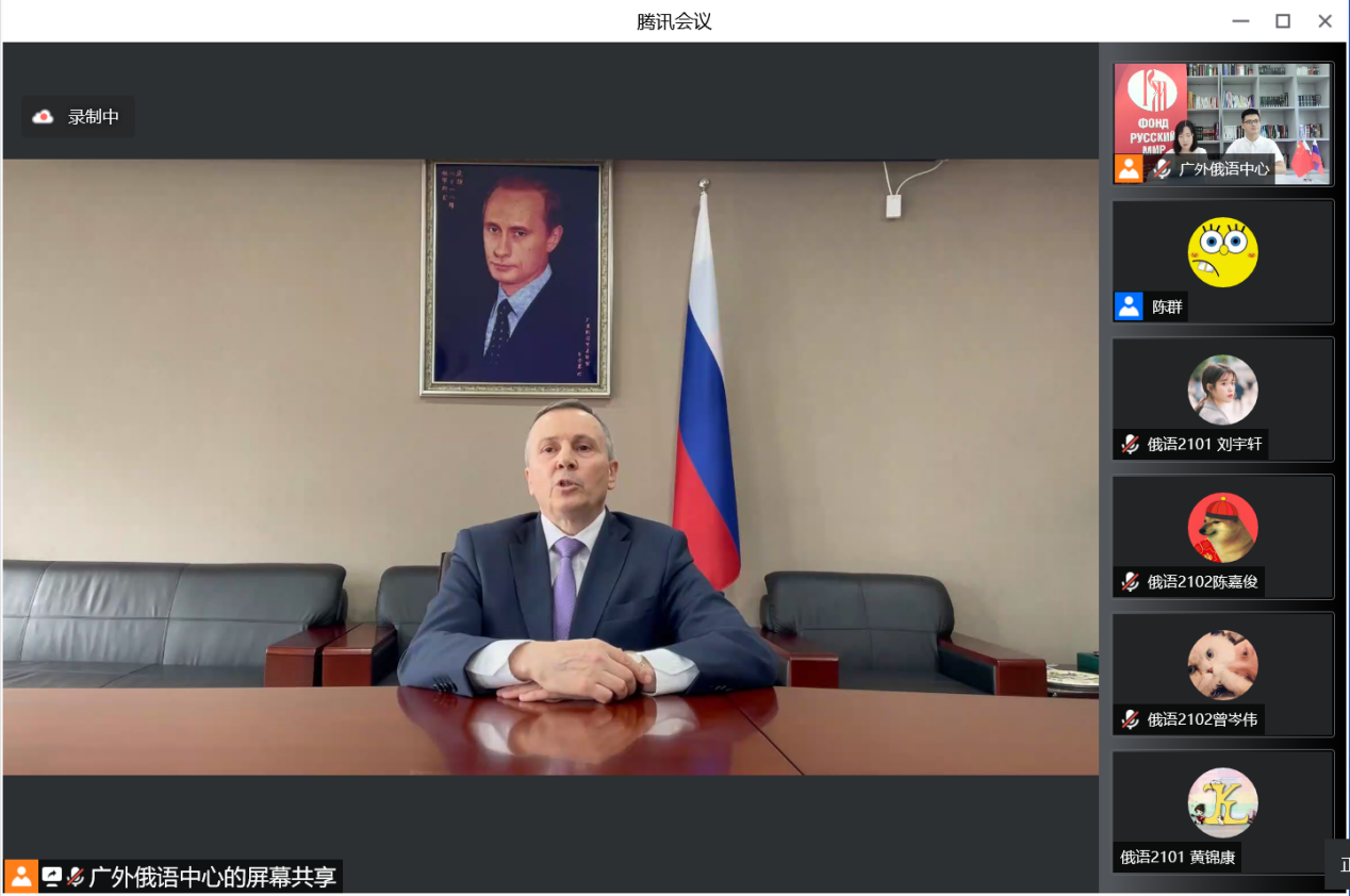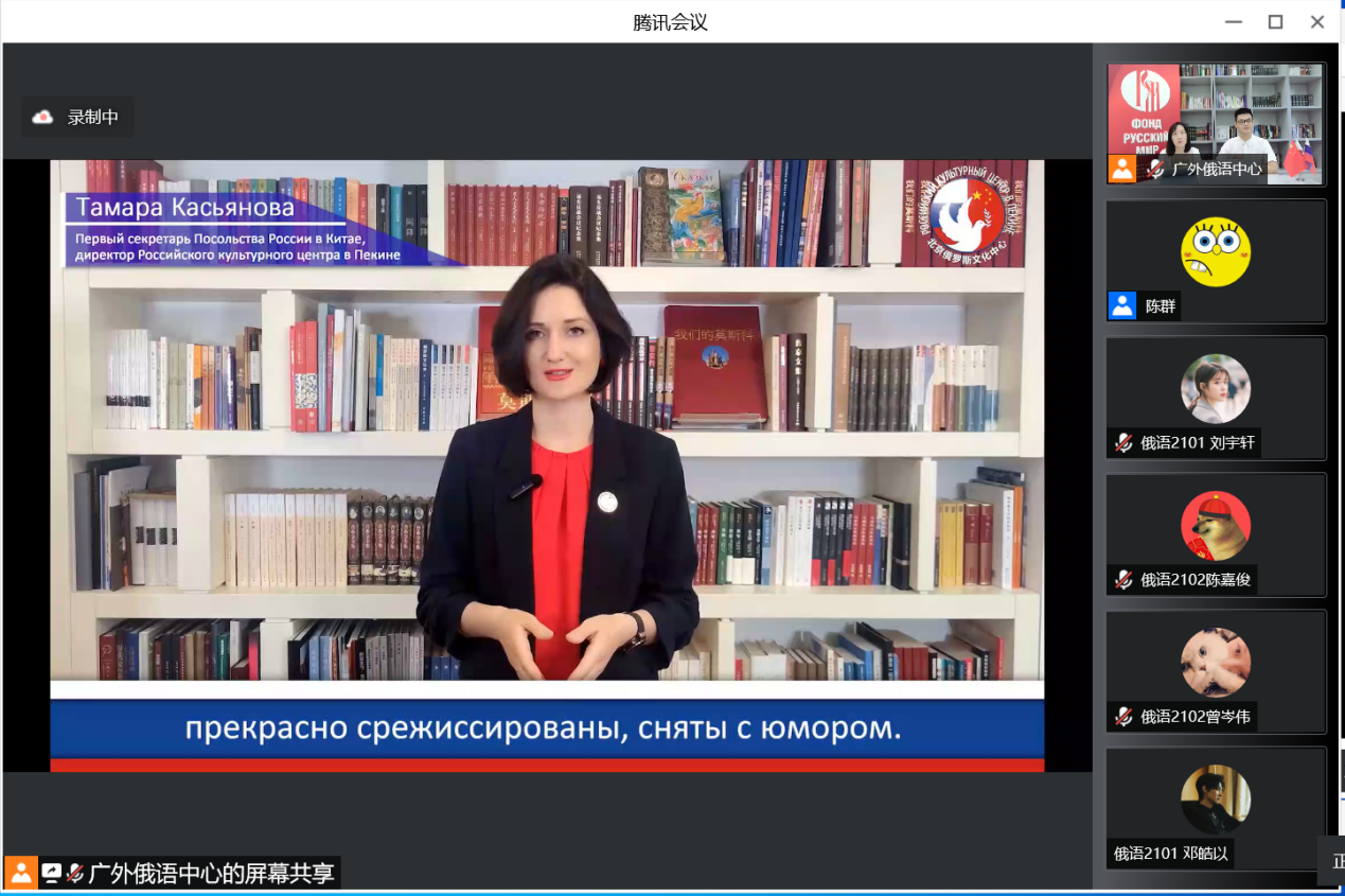 南国商学院、广州外国语学校、佛山莘村中学等学校的150多名师生代表和其他俄语爱好者观看了线上直播。