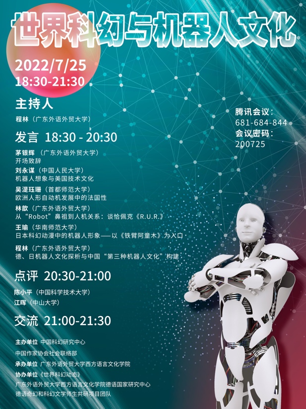 本网讯 2022年7月25日晚,“世界科幻与机器人文化”沙龙在线上举办。本次沙龙由中国科幻研究中心和中国作家协会社会联络部主办,成人在线