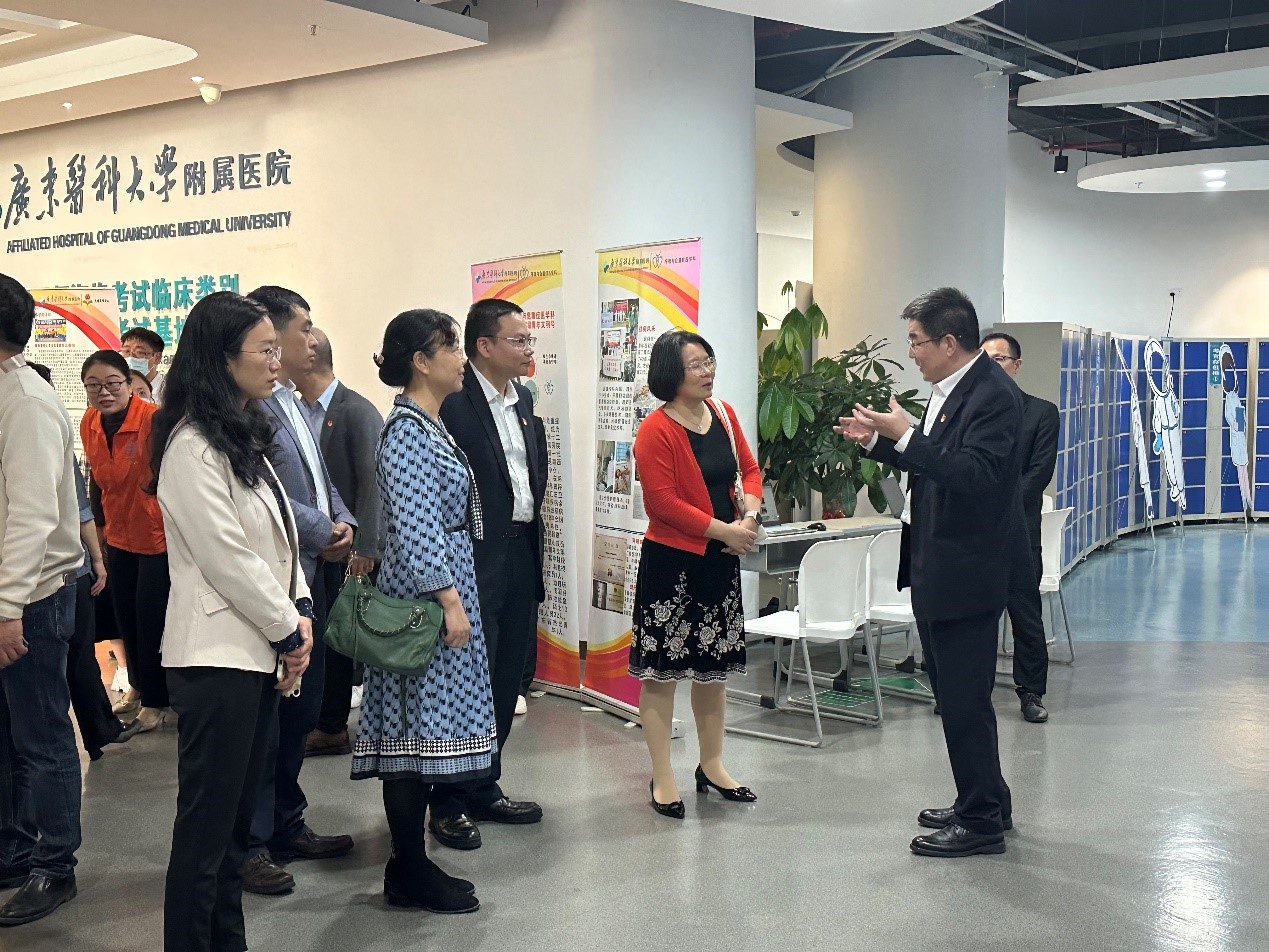 还到广东医附属医院参观学习,听取医院党委书记李明意、团委书记莫源源关于附属医院党建工作、青年工作经验介绍,听取全国全省首批党建“双创”样板党支部、义工幸福银行党支部关于支部的核心运营理念和创新做法。