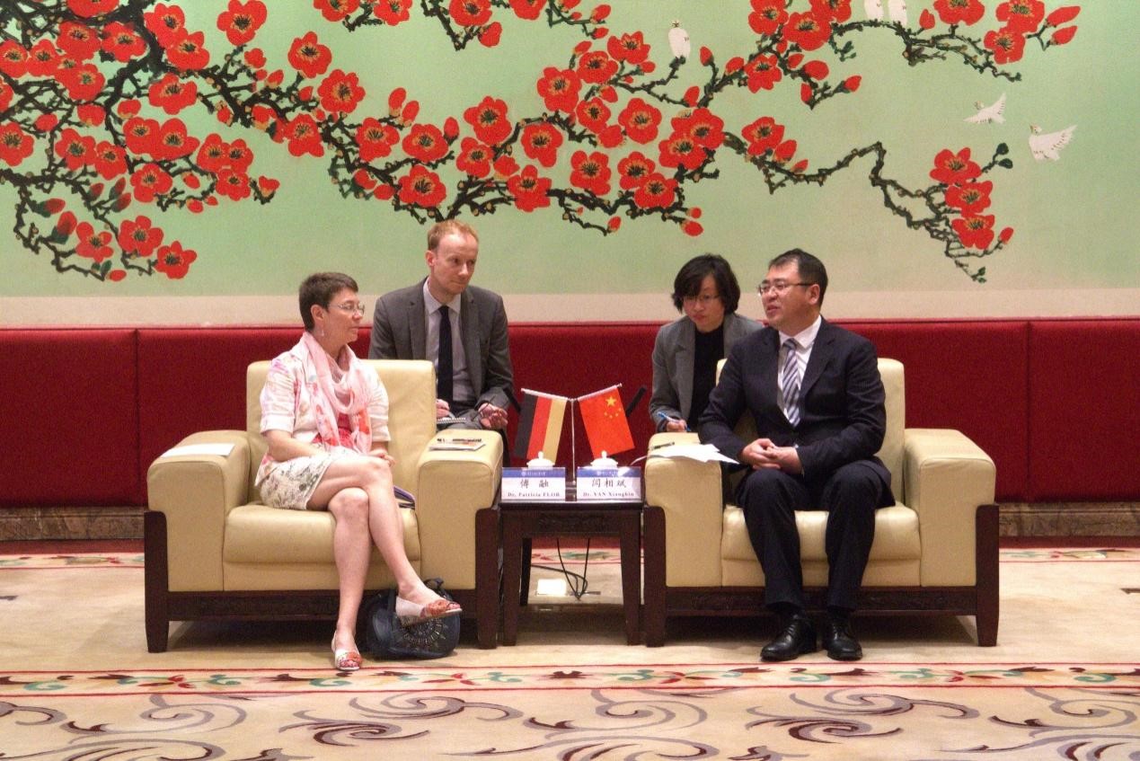 本网讯 11月26日下午,德意志联邦共和国驻华大使傅融博士(Dr. Patricia Flor)、德意志联邦共和国驻广州总领事鲁彦先生(Jan Rudolph)一行来访我校。我校闫相斌校长在白云山校区行政楼贵宾厅会见来宾,焦方太副校长陪同会见。双方就推进文化交流、深化教育合作等友好相谈。