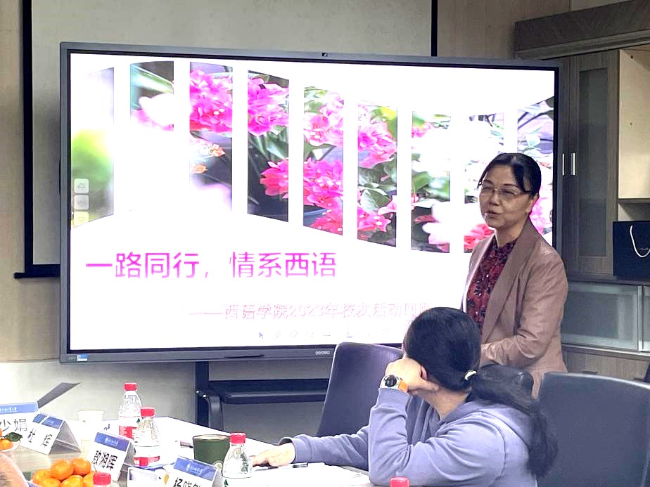 院长、校友会会长杨晓敏对校友们的到来表示热烈欢迎,并向各位校友介绍2023年学院人才培养、专业发展、学科建设、社会服务、国际交流等教育教学各方面工作的开展情况。王秀民对新时期外语学科面临的机遇、挑战和学校学院今后的举措与校友进行了分享,感谢校友们一直以来对学校学院的关心关注和坚定支持,热情欢迎校友们今后一如既往的为学校学院办学出谋献策。
