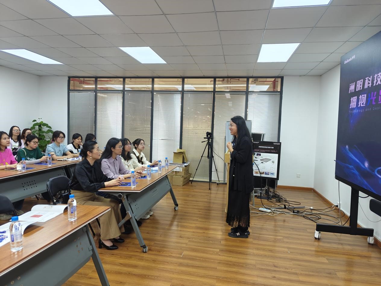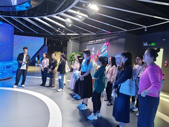 23届希腊语校友梁健佳的带领下,师生们先是参观了企业的展厅,了解了光显技术的演进历程和洲明产品的经典应用场景,还亲身体验了先进光显技术的魅力。