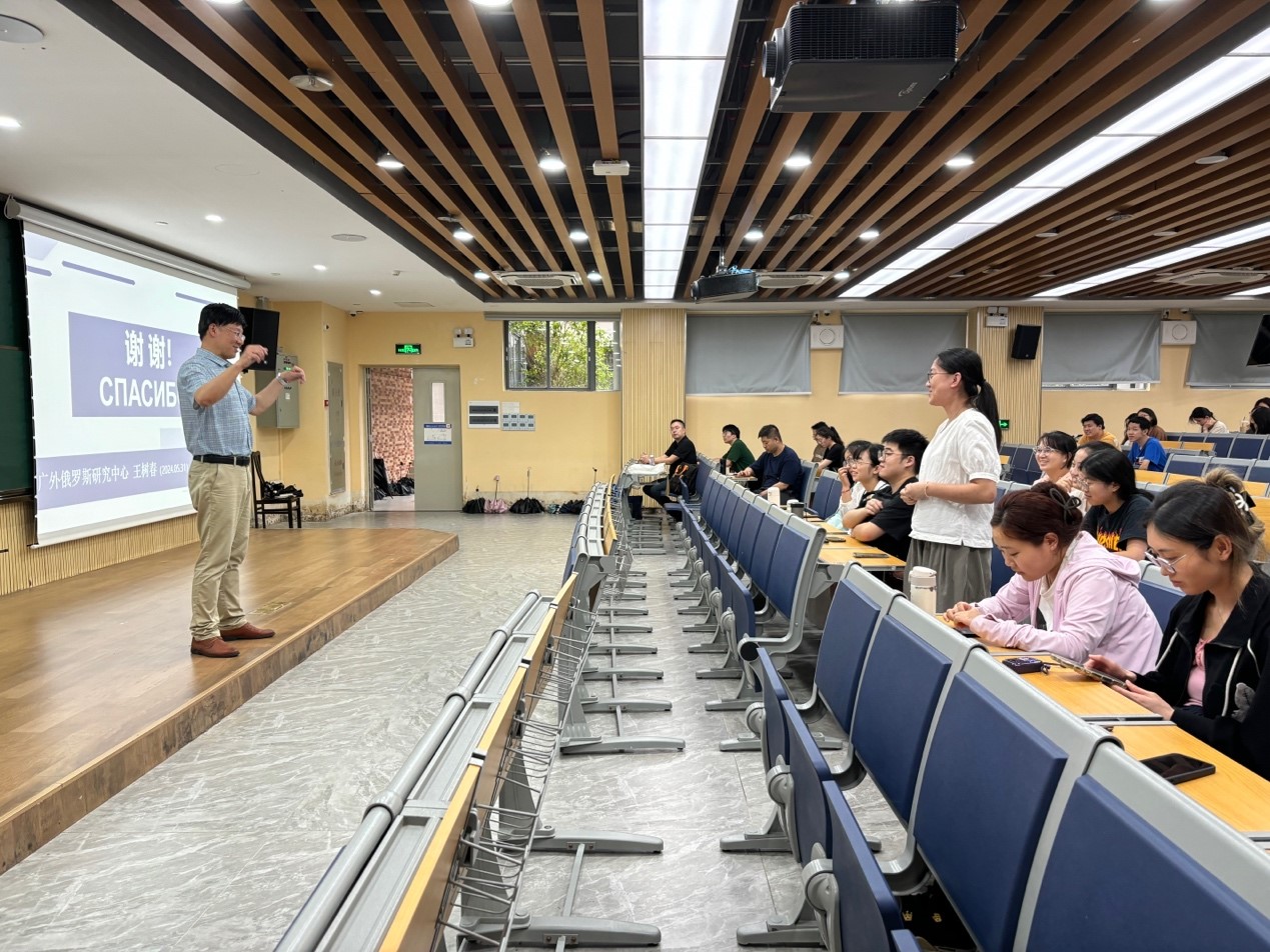 俄罗斯研究中心主任、中国国际政治研究专业委员会常务理事、中国中俄关系史协会常务理事王树春教授在一教南楼109教室为俄语系师生带来宗岱人文讲坛学术讲座“中俄关系的发展前景”。 本次讲座由俄语系系主任陈欢副教授主持,全场师生积极参与互动,现场范围活跃。