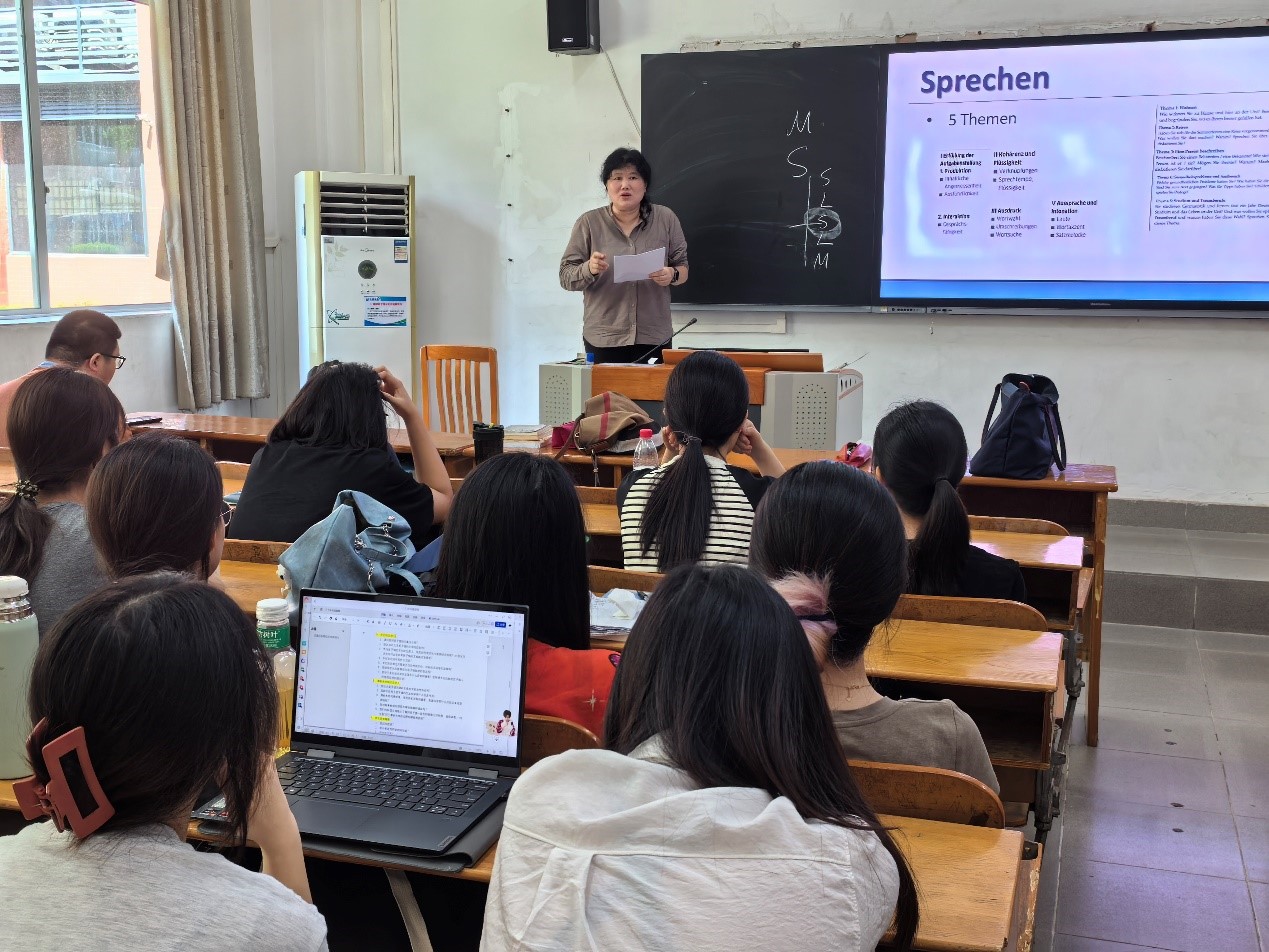 德语系在四教115室举办了针对2023级德语期末考试的解析讲座。德语系2023级01班和02班的学生们踊跃参与。