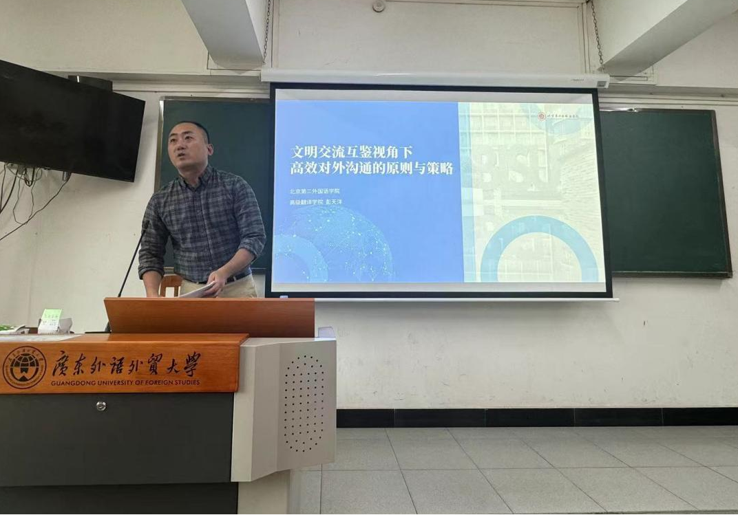 本网讯 10月11日下午,中国翻译协会常务理事、对外传播翻译委员会副主任委员、北京第二外国语学院高级翻译学院彭天洋教授在二教312教室为成人在线