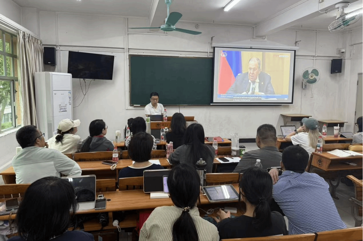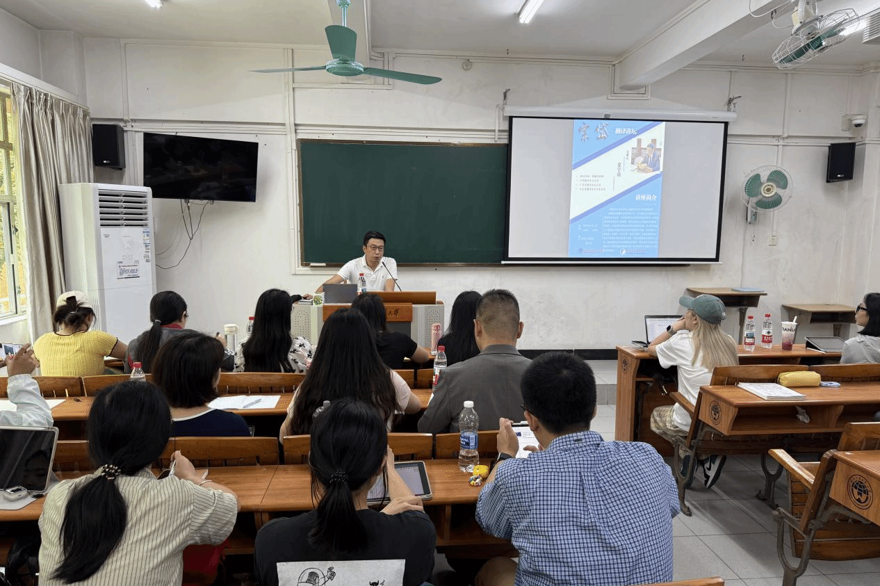 本网讯 2026年4月17日14:00宗岱翻译讲坛在白云山校区二教230教室举行。国家一级翻译、中国翻译协会会员夏宇亮老师应邀为成人在线 俄语系师生作题为《数智时代会议口译人机翻译对比与协作模式探索》的专题讲座。俄语系主任陈欢主持讲座,俄语系研究生负责人姜超老师出席,俄语系师生积极参与互动,现场氛围活跃。