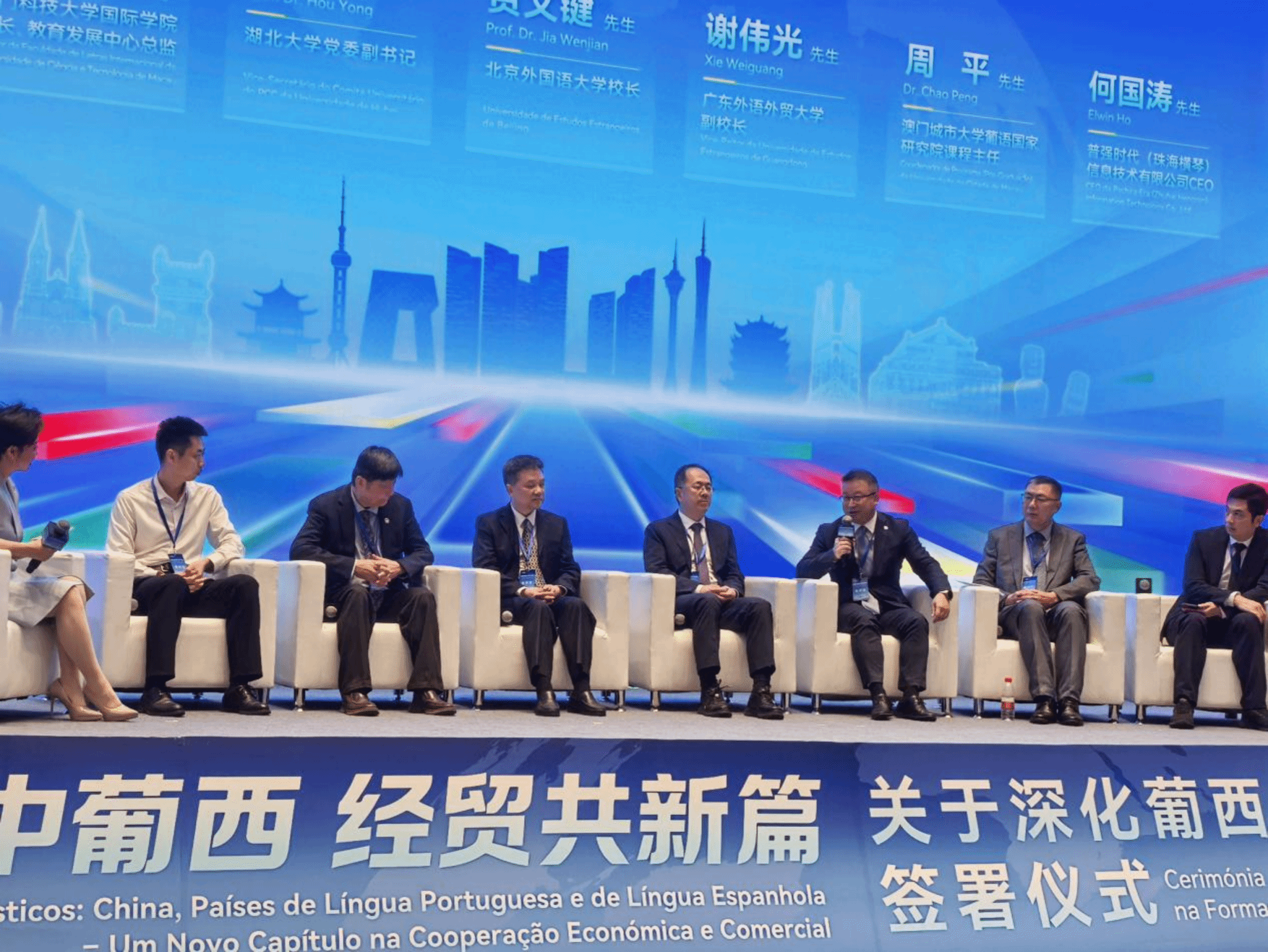 党委书记王秀民、副院长陈星、副书记魏少娟、葡语系系主任尚雪娇、教师杨菁陪同参加了会议并与兄弟院校、政企代表就人才培养、校企合作等议题进行了交流研讨。