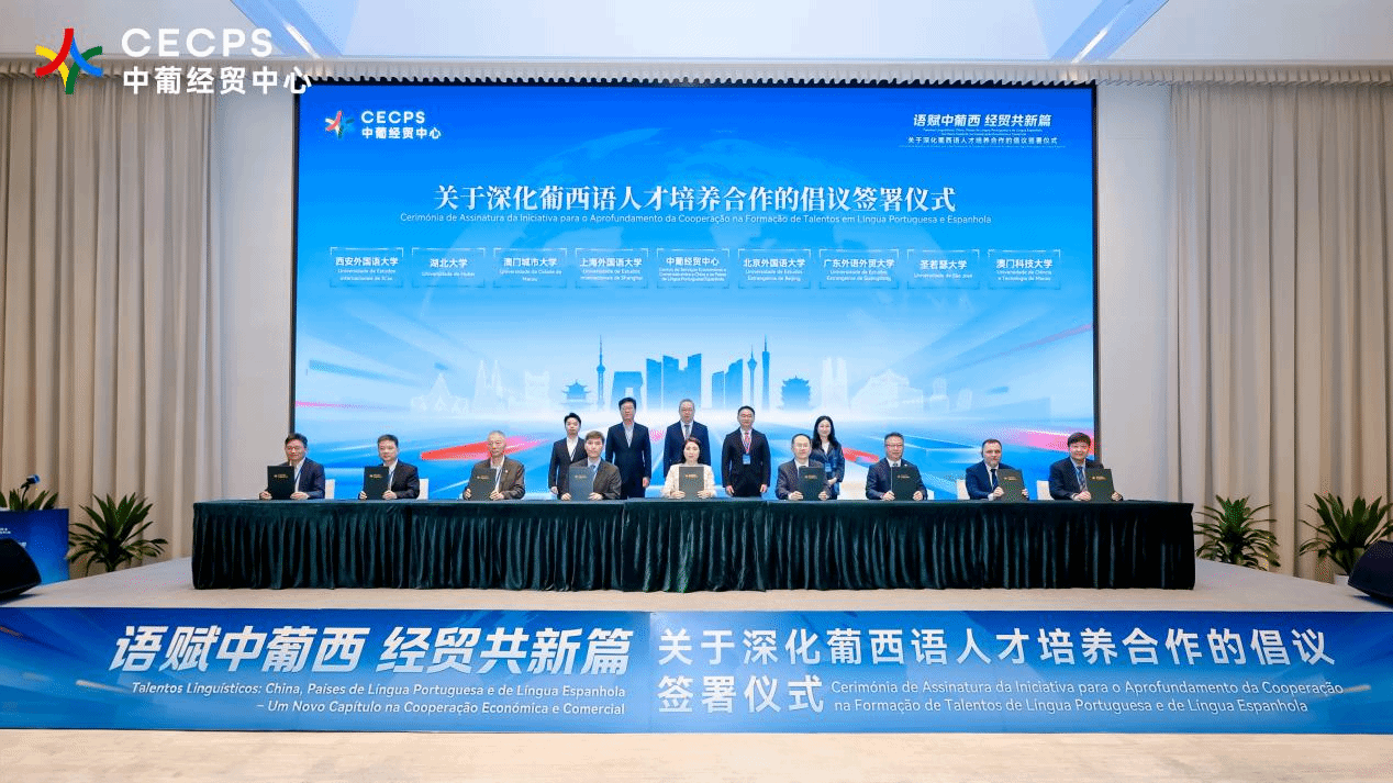 4月26日上午,我校副校长谢伟光受邀到珠海横琴参加由横琴粤澳深度合作区组织、中国—葡语(西语)国家经济贸易服务中心(以下简称“中葡经贸中心”)主办的关于深化葡西语人才培养合作倡议的签署仪式。本次活动旨在联动政府、高校、企业三方力量,深化葡西语人才培养机制创新,拓宽复合型外语人才发展通道。我校作为倡议签署高校之一,与北京外国语大学、上海外国语大学、湖北大学、西安外国语大学,澳门科技大学、澳门城市大学及圣若瑟大学等7所内地及澳门高校,以及横琴粤澳深度合作区执委会、相关政府部门和多家企业代表共聚一堂,共商人才培养新路径。