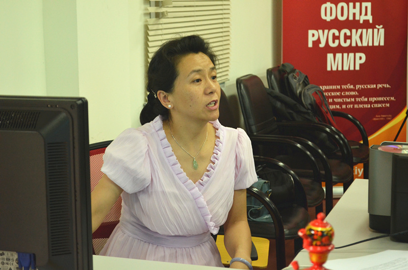 热烈掌声之后,俄语系郭利副教授以“普里什文文学世界所表现的自然和自然观——普里什文自然观的东方色彩”为题展开讲演。郭利老师首先介绍了普里什文的生平以及其影响,解释了她的选题缘起以及研究启示。之后她详细地说明了选题意义,即阅读普里什文的理由。她认为,普里什文是俄国文学中“自然主题”创作中最重要的承前启后者之一,其文学世界中所蕴含的自然生态、社会生态、精神生态等各层面的智慧值得深入开掘研究。她以比较方法、文本分析方法以及传记学批评的方法进行研究。郭利老师在研究普里什文自然观的东方色彩中归纳了中国传统自然观中与普里什文自然观契合的部分:“万物有灵”“万物同源”“万物感应,即人与万物、万物之间互相感应”“天人合一”“回归自然”及“大循环”。她认为普里什文之所以形成这样的自然观,跟他深受托尔斯泰的影响,后者深喜老子哲学以及同时代大哲海德格尔的思想风靡一时,而海氏的思想又有很深的东方渊源,从而较好地诠释了普氏文学作品中的东方元素。