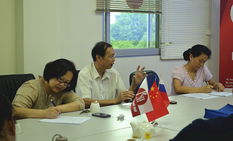 讨论环节中,杨韶刚教授对郭利老师的演讲提出了建议,认为在研究普里什文文学世界所表现的自然和自然观的时候可以联系他在政治方面的见解,两者相结合相信会有更深层的结论,同时应注意其受东方思想影响在其人生经历中的渐进过程。杨可教授也赞扬郭利老师——“普里什文自然观中体现了东方色彩的这个观点是郭利最先提出的。”但“写博士论文优势需要从个人的兴趣爱好上升到学术层面,要就事论理,深入探讨”。尔后,现场的罗颖、林凡博士分别针对东方色彩的内涵界定向郭老师质询,展开了多回合的互动。