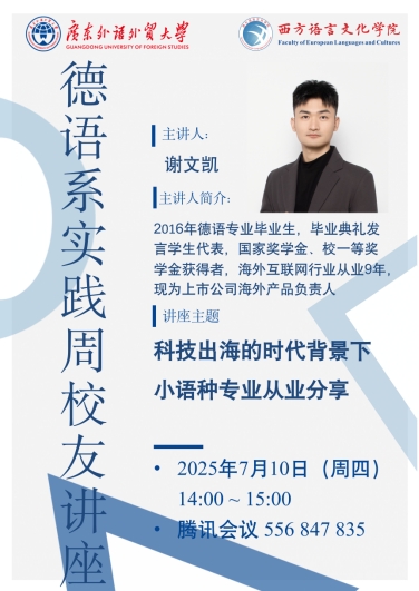 德语系教学实践周系列活动——《科技出海的时代背景下小语种专业从业分享》校友讲座