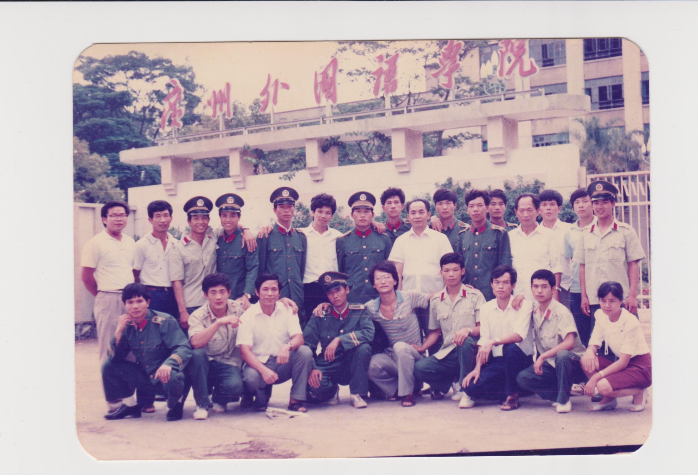 1987年9月新生入学军训武警教官与院系负责人合影留念