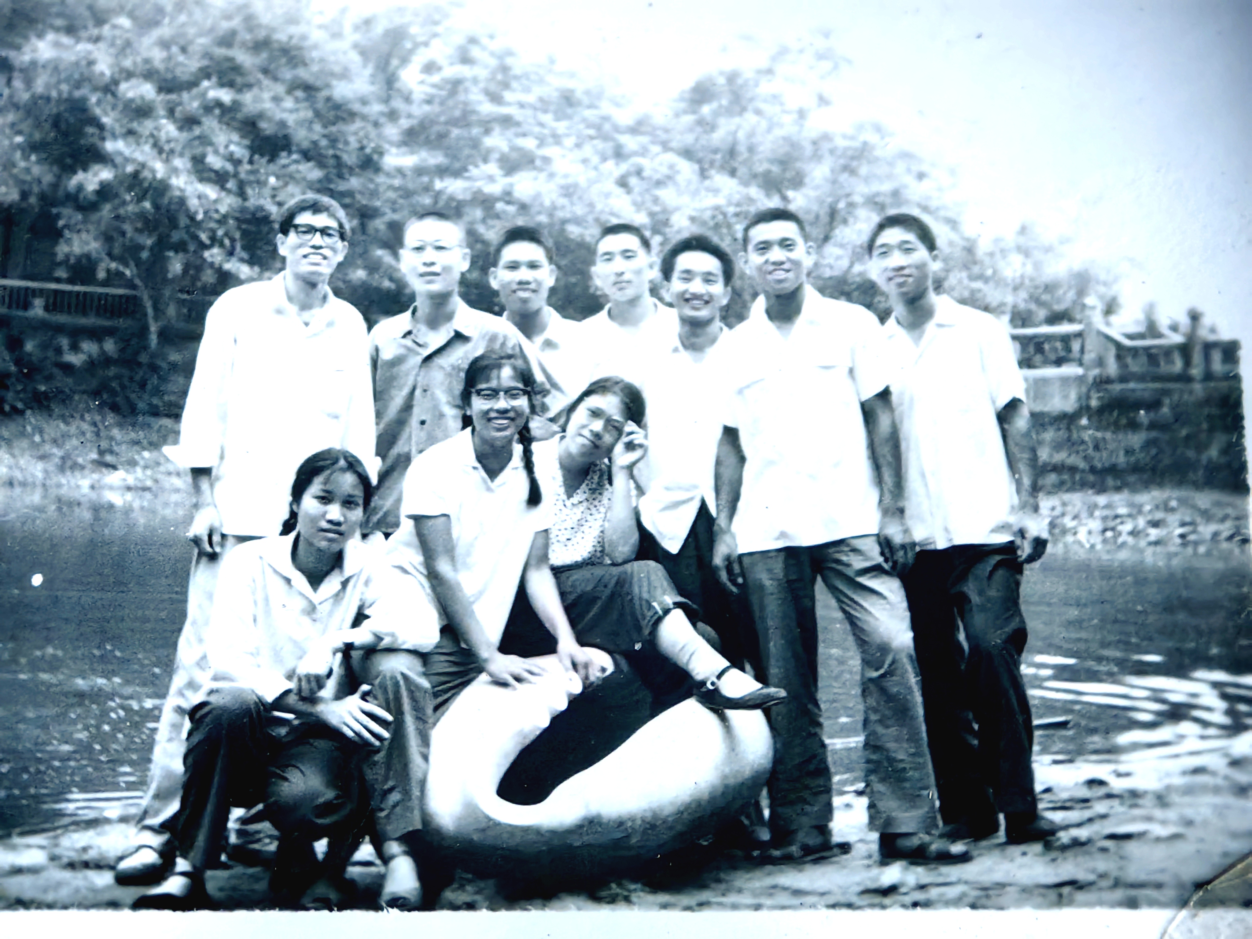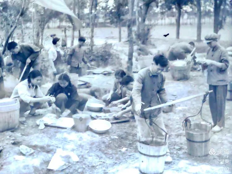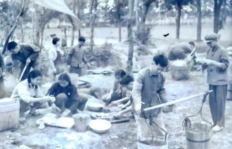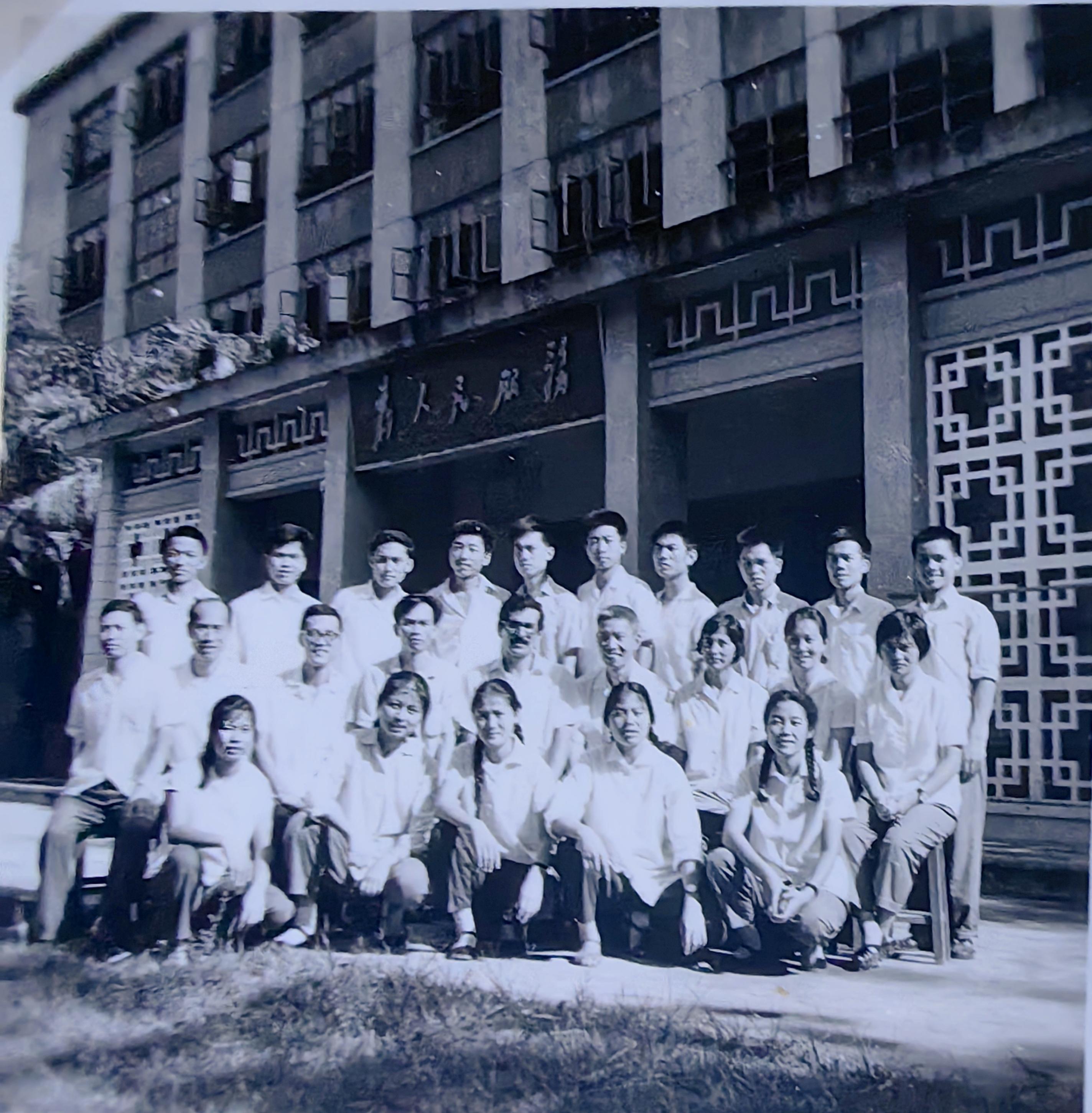 德语班全体被安排去武汉钢铁厂实习,12月返回学校毕业;日语班和俄语班留在学校挖防空洞。这三个班都没有去潼湖,所以毕业时就留下了这张德语、俄语和日语专业的集体毕业照。可惜很多同学没参加拍照,没在照片上。