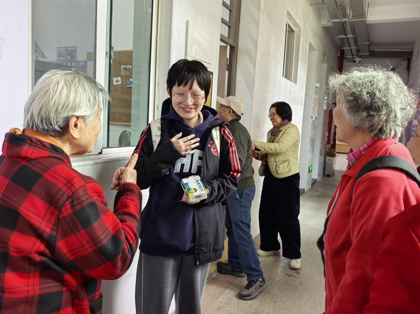 恰逢课间,走出教室的同学们注意到这群特殊的老人,轻声向老师询问:“他们是哪一届的校友呀?”当得知眼前的老人是广外建校第一届学生时,同学们瞬间肃然起敬,亲切地向“大师兄”“大师姐”问好。老人们也格外欣慰,拉着同学们的手夸赞同学们长得好、精气神更好!校园里的新老两代人,在“时光校影”长廊里,在这一刻完成了一场跨越六十年的情感对话。